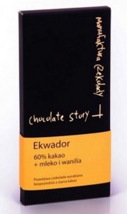 Naturalna czekolada deserowa z Ekwadoru z wanilią i mlekiem. Ta czekolada to wyjątkowa kompozycja mleka, dużej porcji kakao (60%) i naturalnej laski wanilii. Dzięki długiemu procesowi konszowania wanilia w pełni oddaje swoje najcenniejsze walory smakowe i aromatyczne.