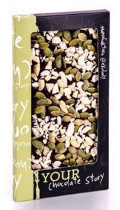 Naturalna czekolada mleczna z nerkowcem i dynią. Słodkawe orzechy nerkowca i pestki z dyni połączone z pyszną, mleczną czekoladą. Oto nasza propozycja na jesień! Skład: cukier, masło kakaowe, prażone ziarno kakao, mleko w proszku, orzechy nerkowca, pestki z dyni.