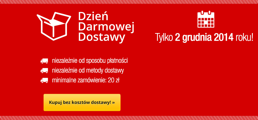 Aby skorzystać z darmowej dostawy, wystarczy złożyć zamówienie w tym dniu na minimalną kwotę 20 zł.